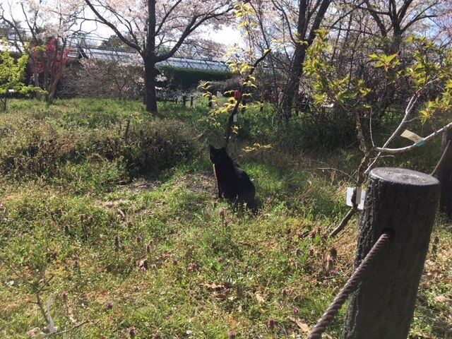桜の木の根元に佇む猫ちゃんを見つけました。